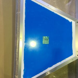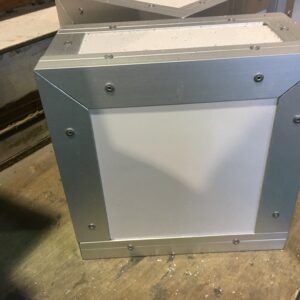 こちらは私が入社してから初めて作ったもので弊社の吸音パネルをボックス型にして騒音源の機械を密閉したときに中の機械が発する熱を外に逃がすために弊社では吸気ファンなどを取り付けます。その際ファンだけだと音も逃げてしまいますので、ファンカバーを取り付ける事によってあとは逃さず熱のみを外に逃がす事ができます。