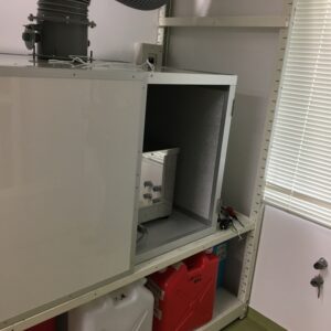 こちらは空調機の外に出る空気の音を静かにしてほしいとご要望があり、こちらの形になりました。 上に少し隙間をあけそこから空気を逃がす事ができ中で吸音する事も可能になっております。