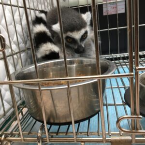 前に行ったレプタイルズショーはビルの1フロアを使ってやられていましたが今回のはツインメッセ静岡で行われとても大きい展示会でした。 多くの爬虫類がいる中私の目に止まったのはマダガスカルにも出てくる、ワオキツネザルでした。 柵の中に入っていて、まるで何か悪いことをして反省しているかのようでした。