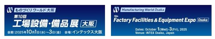 10月1日~10月3日まで行われる「第28回 ものづくり ワールド 大阪」に出展いたします。会場は「インテックス大阪」で、出展ブースは3号館の工場設備・備品展内(20-26)にございます。是非ご来場ください。お待ちしております。