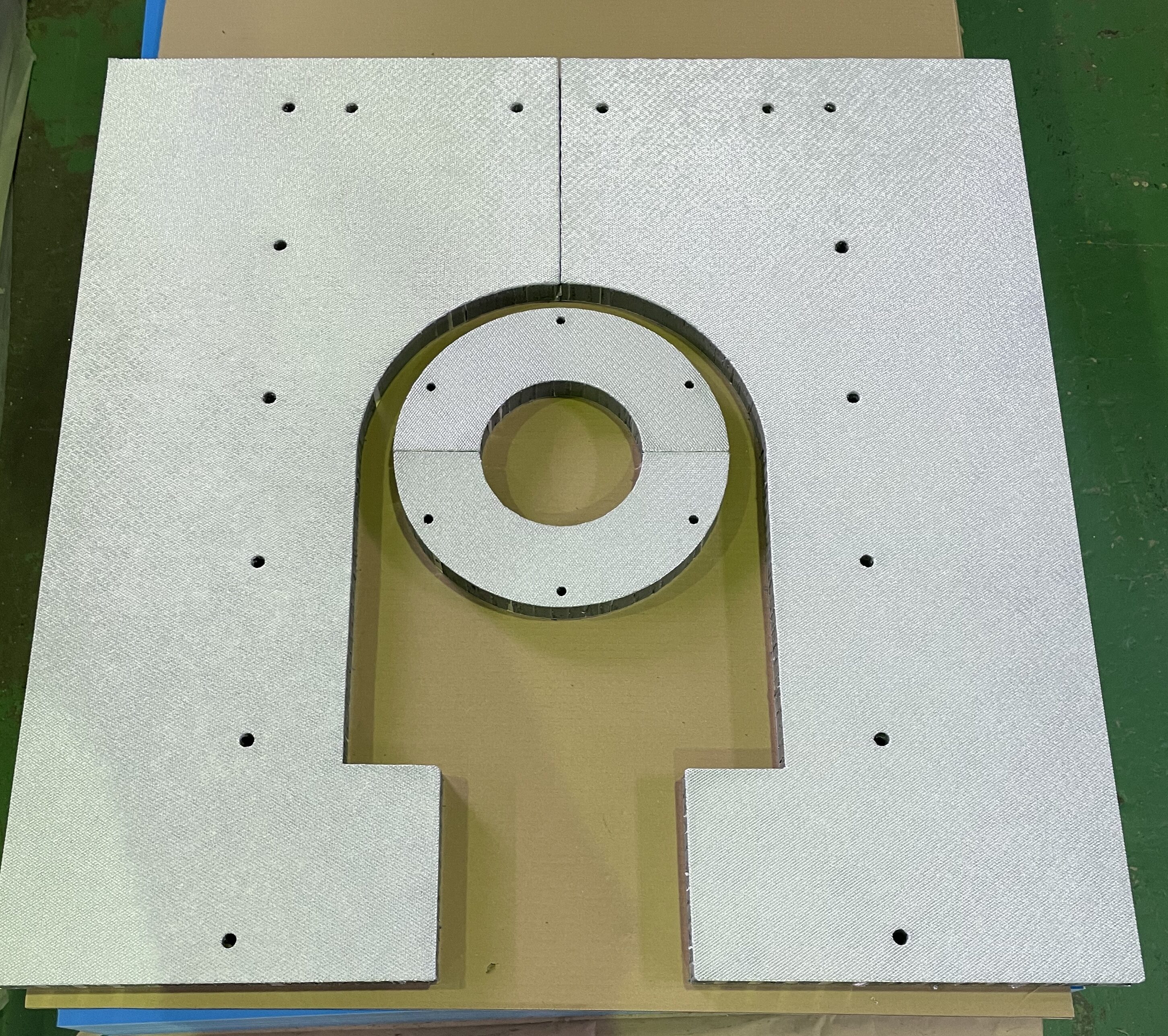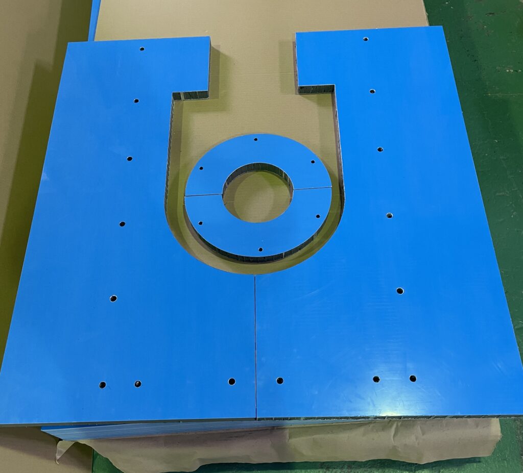 今回の製作では、2種類の防音パネルを製作は、約1週間でした。加工内容はR切欠き、通し穴、特殊形状加工など多岐にわたりました。専用機械での対応が難しいため、今回はすべて手作業での製作となりました。