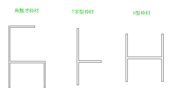 | T字型枠材 | 直角・並列いずれの結合にも対応 | 主に脱着パネルの羽として使用。H型枠材の代わりに使うことで脱着仕様にできます。(画像中央) |