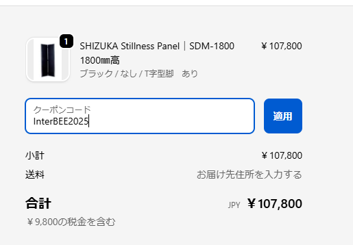 ご購入時にクーポンコード【InterBEE2025】をご入力いただくと、全品15%OFFにてご購入いただけます。