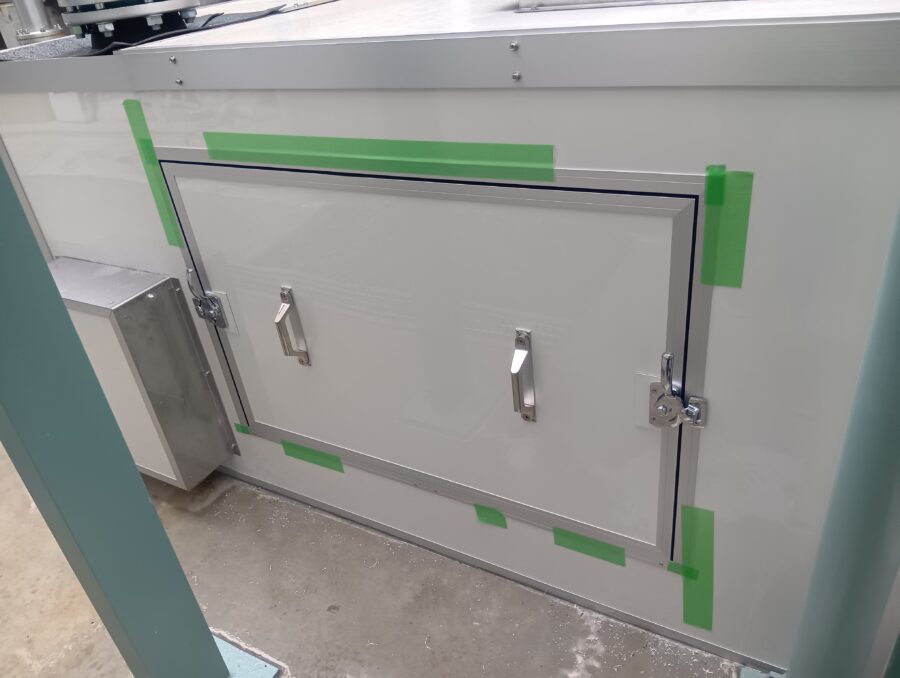 上記の一度弊社で設置を行った防音カバーに対して、追加工で側面をくりぬき、取り外しパネルの取付けを行ってほしいというご要望でした。