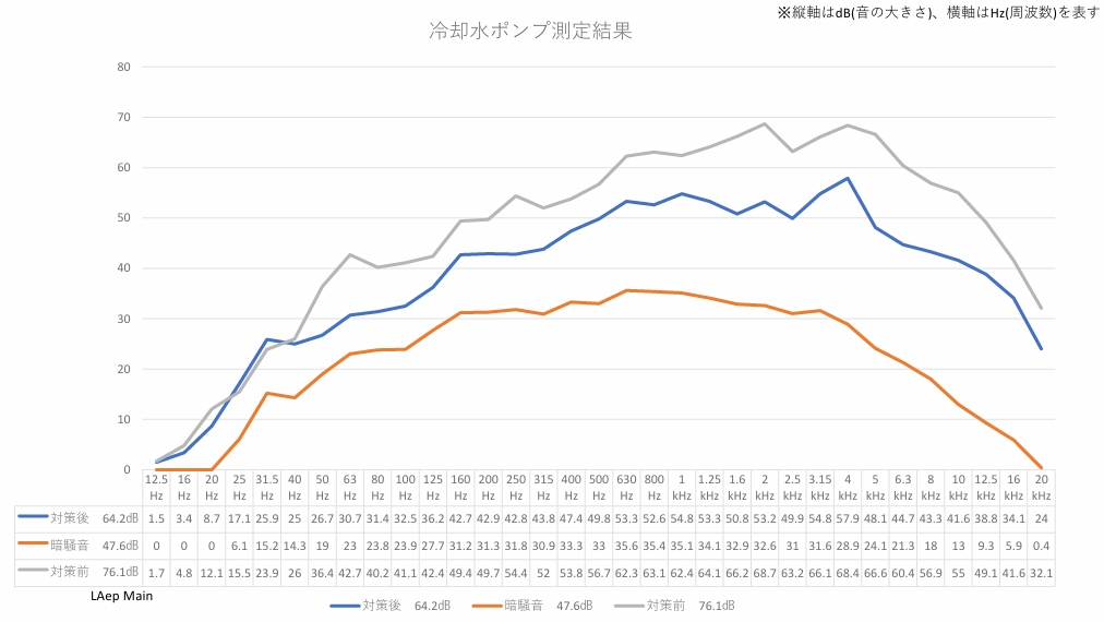 また、高性能な遮音材を採用したことで、低周波を含むポンプ騒音にも対応でき、より実効性の高い防音対策となりました。