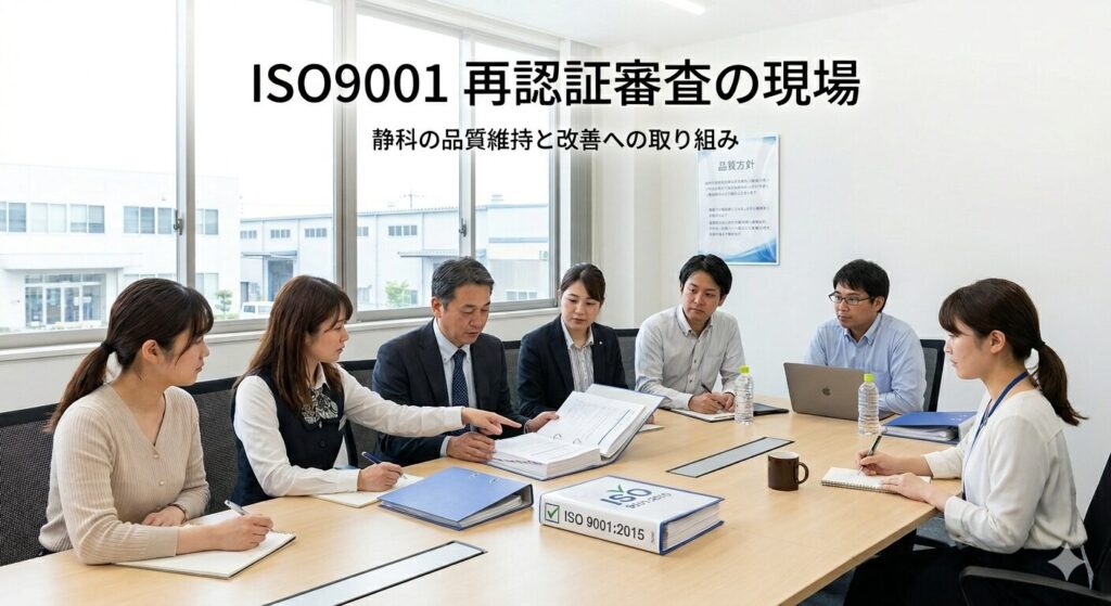 ISO9001は、一度認証を受けたら終わりではありません。本当にその仕組みが続けられているか、きちんと使われているかを確認するために、定期的に審査があります。今回受けた再認証審査も、そのひとつです。