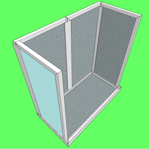 パネル同士は専用の繋ぎ材とビスで固定することができ、床面、側面、天板と順番に設置していくだけで立派な形に仕上げることができます。上記の画像は一例で、パネルの枚数を増減することでサイズを変更したり、防音扉や排気ファンのオプションなどを追加したりと、お客様のご要望に合わせて理想の簡易無響室をお作り致します。設置に不安がありましたら、事前におっしゃって頂ければ実際の設置画像をまとめた組立書を付随致しますので、是非お気軽にお申し付け下さい。