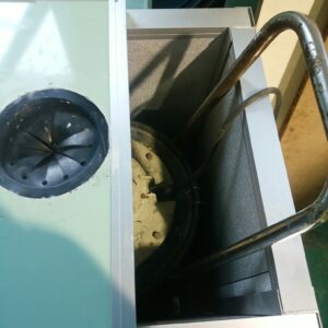 集塵機用防音ボックスが完成しました。製造3号です。先日集塵機用防音ボックスがバージョンアップされました。今回のお気に入りはこの部分です。(画像①)