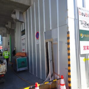 現在、横浜市グランモール近辺にて橋梁工事が行われております。その工事音対策として、弊社に一人静タイプAが採用されました。「第33回全国都市緑化よこはまフェア」が今年3月25日から開催されるので、全面的な補修工事が行われております。グランモールはみなとみらい線駅近く、横浜美術館、パシフィコ横浜に近いショッピングモールです。そのため、工事期間中でも営業を行いますので、工事騒音が問題となります。横浜市役所としては、市内の騒音問題も同時に解決しようと、横浜市役所に導入実績がないにも関わらず弊社製品をご採用いただきました。