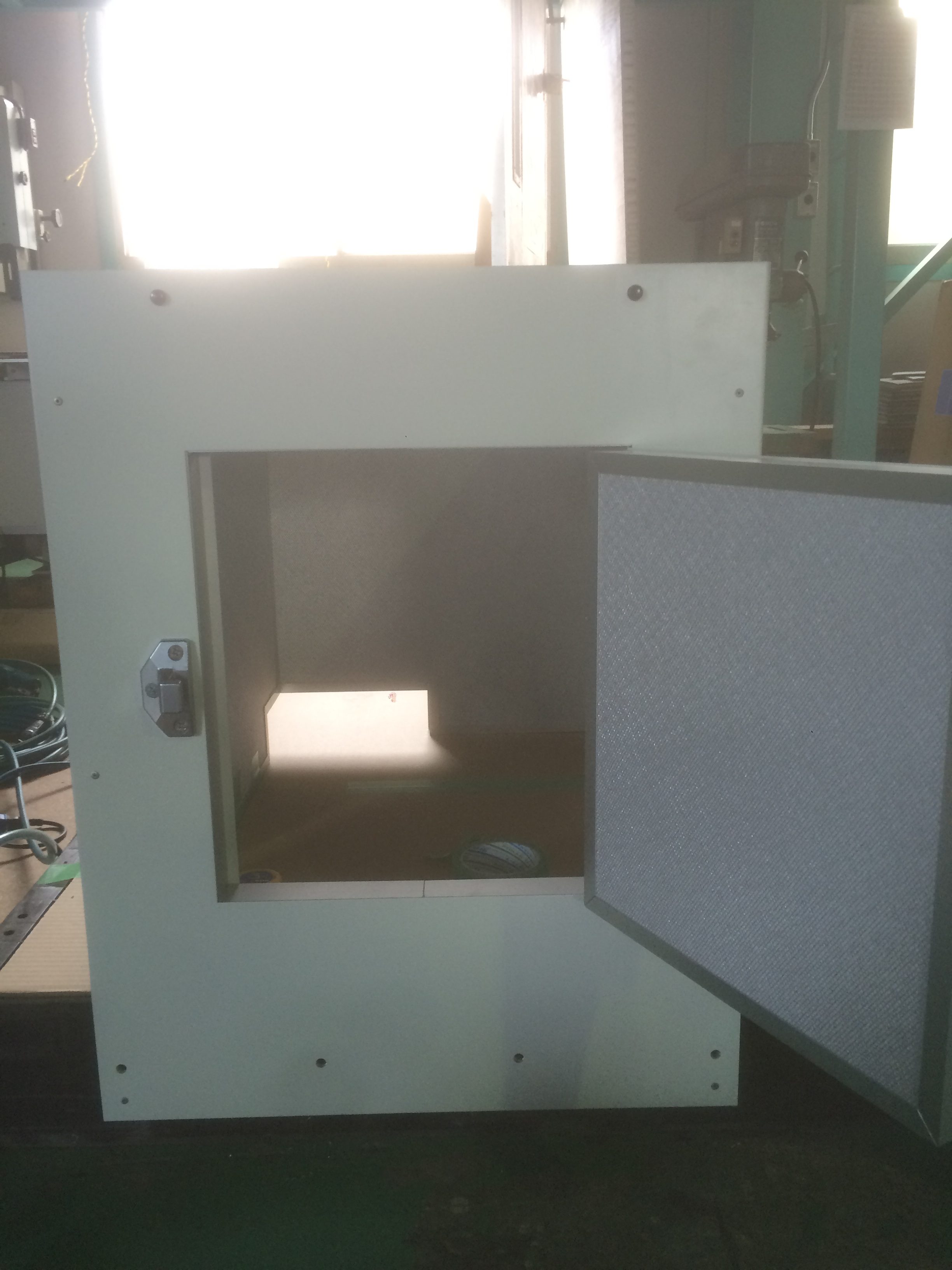 部分的に切り欠きや開口、扉などがあるため、密閉度は充分ではありませんが、弊社測定検査では、83.3dBの音源をボックス内に入れると66.8dBになりました。18.5dB減衰という結果が出ました。また低減しづらい、下記の低い周波数帯の音域においても、素晴らしい防音性能の製品が出来ました。