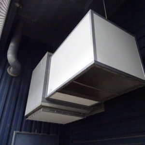 サイレンサーは白の焼き付け塗装をおこなっているので、屋外でも長期的に外観を保つことができます。また、内部の吸音材も特殊な構造で性能を維持しておりますので、設置後のメンテナンスの手間がかからないメリットがあります。工場内・外の騒音問題がありましたら是非お問い合わせよりご相談くださいませ。
