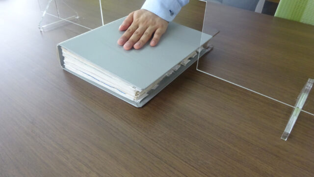アクリル製の脚は自立するため、机越しの間仕切りや対面業務などに適しております。透明感が高いため、圧迫感が少ないのが特徴です。間仕切りなど大掛かりな設置工事が不要なため、従業員様やお客様への安心感を確保する上で有効です。下方部を開口した仕様もできますので、窓口業務などモノの出し入れ、受け渡しなどを行う作業でもご利用できます。