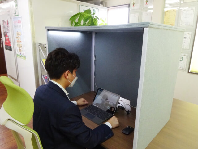 防音室のようにスペースやコストをかけずに、WEB会議などの環境改善にご利用頂けます。内部の吸音効果で、声の響きを抑えて話しやすく、また外に聞こえにくい環境が整えられます。