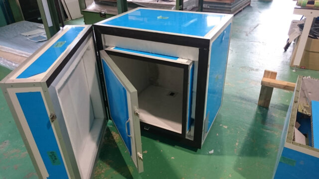 配線口の二重構造化による音漏れの防止や、移動用のキャスターや配線コネクタ、吊上げ用アイボルト、照明器具(蛍光ライト)の設置など、バリエーション豊富なオーダーオプションをご用意。皆様のご希望に合わせた最適な製品を提供します。